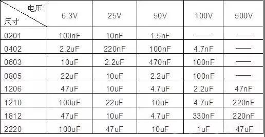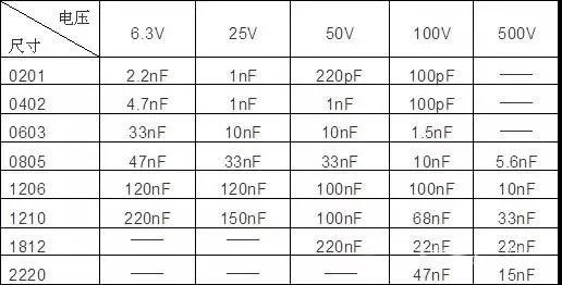 容量精度在10%左右,容量規(guī)模較寬,慣例100PF~47uF能出產(chǎn)。下表給出了X7R電容器可選取的容量規(guī)模最大值。