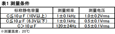 使用LCR測量儀對高誘電率型村田陶瓷電容器進行測量時,有時無法得到與標(biāo)稱靜電容量相同的值。高誘電率型村田陶瓷電容器的靜電容量,會隨著溫度、電壓(AC、DC)、頻率及時間的變化而發(fā)生變化,因此,為了得到標(biāo)稱靜電容量,需要按照下表1. 日本工業(yè)標(biāo)準(zhǔn) JIS C 5101-1-1998年靜電容量(4.7項)中規(guī)定的測量條件實施測量。