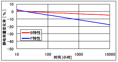 圖5.老化特性 ※靜電容量隨著時間變化而發(fā)生變化。