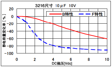 圖2.DC偏壓特性 ※靜電容量隨著不同的DC偏壓而發(fā)生變化。