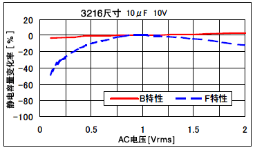 圖3.AC電壓特性 ※靜電容量隨著不同的AC電壓而發(fā)生變化。